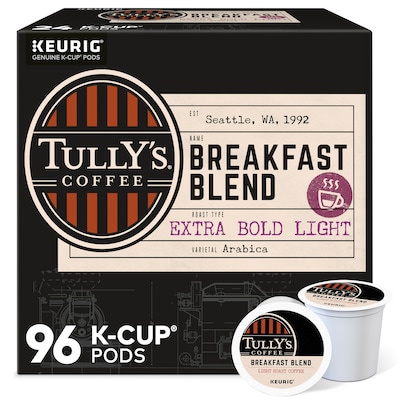 Tully's Breakfast Blend Extra Bold Coffee, Keurig K-Cup Pod, Light Roast, 96/Carton (192719CT)