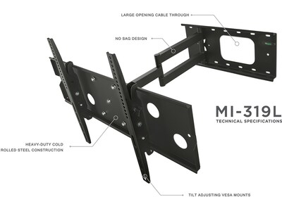 MI-392 fits TVs with VESA pattern from 100x100mm to 800x400mm, screens up to 90", and holds up to 176lbs