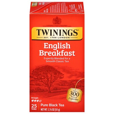 Twinings English Breakfast Black Tea Bags, 25/Box (TNA51726)