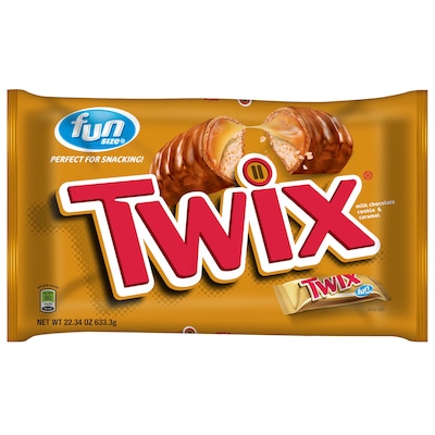 - Bulk bag of fun size TWIX Caramel and Cookie Candy Bars