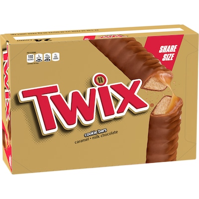 - Sharing size, individually wrapped Twix Caramel and Chocolate Cookie Bars