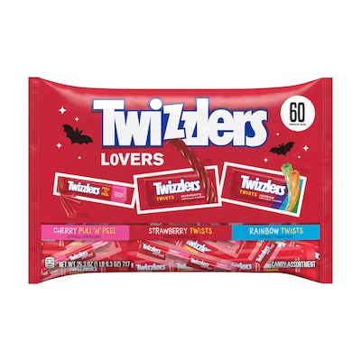 - includes TWIZZLERS PULL ‘N’ PEEL Cherry Flavored Candy, TWIZZLERS Twists Strawberry Flavored Candy and TWIZZLERS