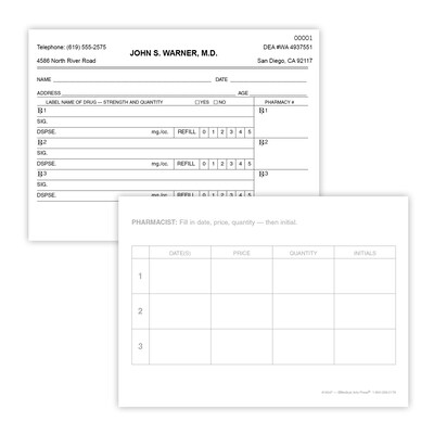 - Write up to three prescriptions for any patient; custom numbering included