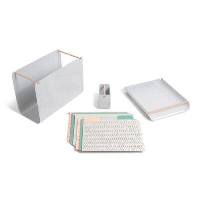 Contemporary desk accessories for your modern office. The U Brands Arc filing value pack includes one hanging file basket, one letter tray, one pencil cup, three assorted tabbed file folders, and three assorted hanging file folders.