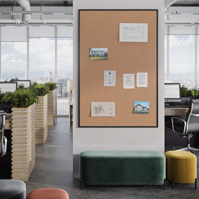 U Brands Cork Bulletin Board, 47" x 35", Black Aluminum Frame
