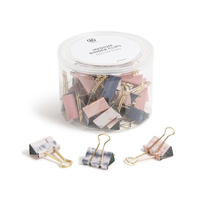 It's often attention paid to the smallest details that really creates the feel of a space. Uplift your workspace, desk or simply your binder with a touch of sophistication and luxury when you use this 36-count set of Soft Dye binder clips. These clips are elevated with subdued yet colorful exteriors and enough versatility to help you organize all your documents from family records to school assignments and more. Sized at 32mm, these clips are ideal for collections of loose-leaf paper. Their various designs of solid light pink, solid rose pink, solid navy, pink soft dye and gray soft dye make it easy to color code your materials. If the warmer undertones of pink and gold don't compliment your space, we also offer these stylish accessories in a Moroccan set that features cooler tones of gray, white and black. Use them in combination with our other products that will help build the relaxed aesthetic and give yourself a complete set. • U Brands is a dynamic, new company focused on a complete and diverse line of stationery, office, and home goods. We are developing some of the most unique and inspiring stationery and home office products. Our pledge is to deliver innovative and creative designs with great quality and value.