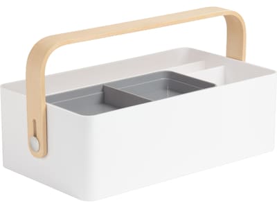 Organization doesn't have to be boring! Designed with clean lines and natural elements, The Mod Caddy desktop organizer by U Brands provides all-in-one storage for files, journals, pens, markers, and more. The removable insert tray perfectly holds keys, sticky notes, or paper clips. Perfect for any room in your home or office, maximize your space in style with this simple desktop addition.