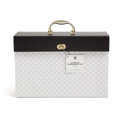 Stride into your next meeting with this 19-pocket file organizer, a statement of functional style. With its sophisticated gold accents and elegant geometric design, it wouldn't be out of place on a fashion runway. Featuring die-cut tab dividers and a secure-lock closure, it ensures your papers are as impeccably arranged as your ensemble. This isn't just about keeping documents in check—it's about owning the room, with every detail designed to elevate your executive presence.
