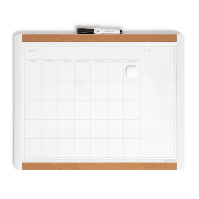 U Brands pin-it magnetic dry erase monthly calendar board has a stylish modern frame that provides an upscale look and finish to any room setting. The built-in cork frame allows you to pin up notes, reminders, pictures coupons, business cards and more without compromising your dry erase surface.