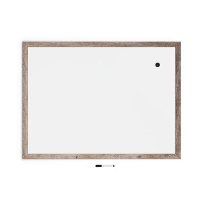 The U Brands decor magnetic dry-erase board provides a natural contemporary surface. A rustic 1.5" decorative MDF frame adds durability and provides a designer look. Simplified mounting hardware allows for vertical or horizontal use. ISTA 3A packaging provides extra-supportive corrugate, which is highly resistant to damage.