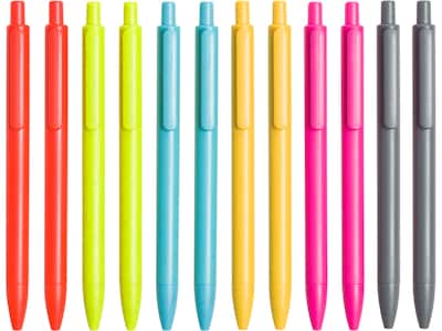 - Lays down extra smooth ink in assorted colors: black, pink, red, green, yellow, and blue