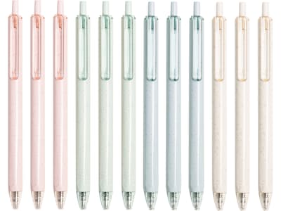Introducing the U Brands U-Eco Pastel Speckle click gel pens. Brought to you by the brand's passion to provide you with writing tools that are better-looking, better-performing, and better for the planet, these pens are constructed from plant-based materials and feature subdued yet eye-catching hues of sage, blue, blush, and cream. U Brands minimized the amount of plastic used to produce these pens and replaced it with reclaimed and renewable wheat straw (that's what the little speckles are). Less plastic waste, more happy writing with these pens that lay down black ink smooth and bold at a 0.7mm point size.