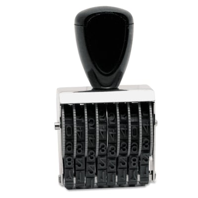 - Rubber numberer stamp with durable steel frame.