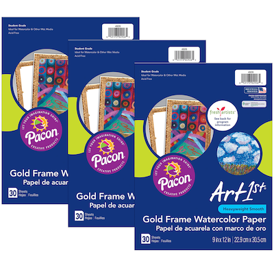 UCreate Watercolor Paper, Gold Frame, Grade K+, 30 Sheets Per Pack, 3 Packs (PAC4926-3)