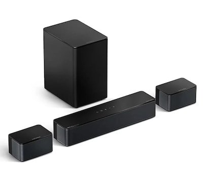 Transform your living room into a cinematic experience with the Ultimea Poseidon D60 5.1-channel soundbar. Featuring advanced Dolby Atmos decoding, BassMX Technology, and customizable surround options, this sound system takes your home entertainment to new heights. Including a soundbar, two satellite speakers and a wireless subwoofer. From Ultimea.