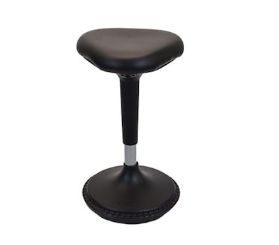 Adjustable height balance stool lets you perch near standing (perfect for standing desks), sit still, or gently rock, tip, twist, swivel and move while sitting normally.