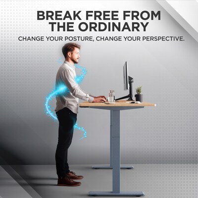 Uncaged Ergonomics Rise Up Electric Adjustable Height Standing Desk with Natural Bamboo Desktop Gray Frame (Rugb)