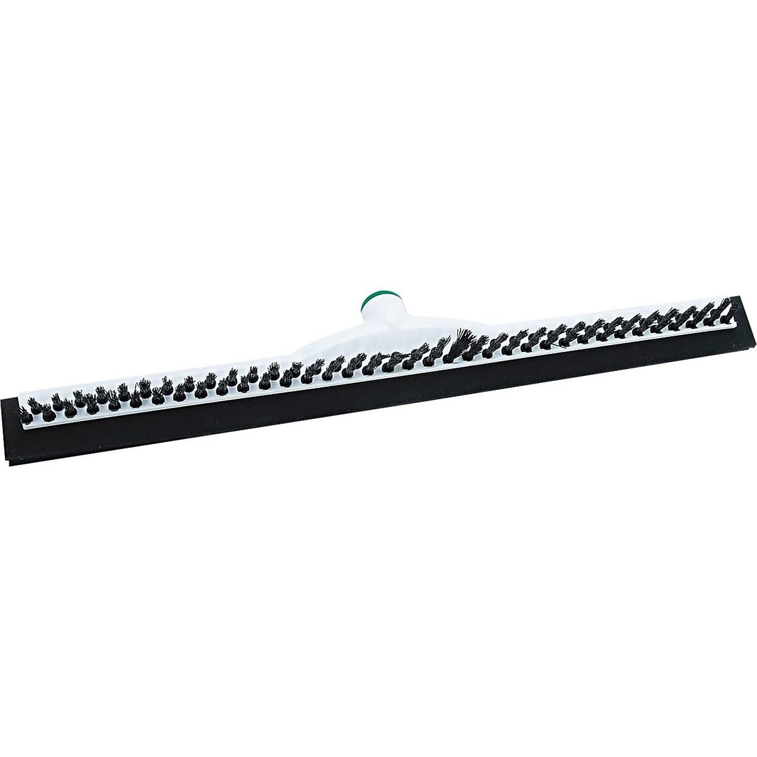 Remove dirt and debris with this two-in-one sanitary brush that will both scrub and squeegee surfaces. This brush is crafted with strong polypropylene bristles to enhance scrubbing and its twin foam rubber squeegee comes with a splash guard. At 22 inches wide, this Unger cleaning brush and squeegee can be used with any Acme threaded handle to access hard-to-reach places.