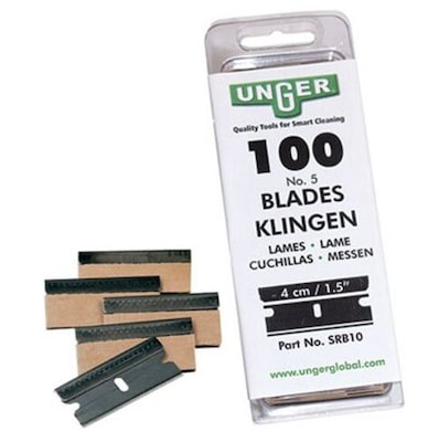 Unger Safety Scraper Replacement Blades, #9, Stainless Steel, 100/Box - Sharp, stainless steel razor blades keep your Unger Safety Scraper or Mini Scraper working as well as it did the day you bought it. Convenient clamshell packaging for safety. Easy to replace.