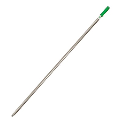 The Unger WaterWand 58" Floor Cleaning Handle is designed for durability and ease of use. Made from anodized aluminum with a threaded zinc alloy tip, it features a fluted finish for added strength and an ergonomic grip for comfortable handling. The convenient hang-up hole allows for easy storage.