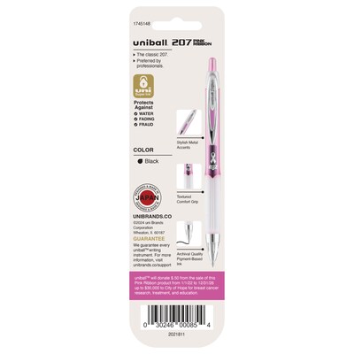 uni-ball 207 Pink Ribbon Retractable Gel Pens, Medium Point, 0.7mm, Black, 2/Pack (1745148)