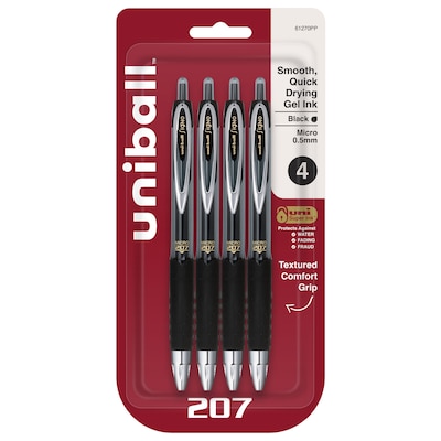 uni-ball 207 Retractable Gel Pens, Micro Point, Black Ink, 4/Pack (61270)
