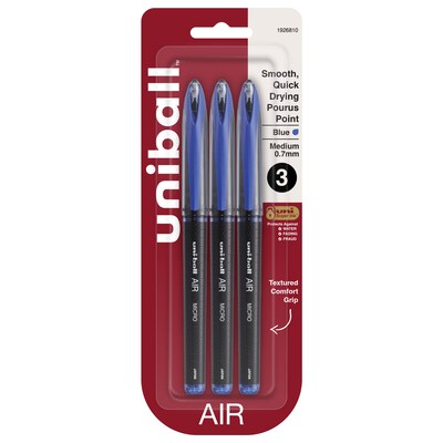 uni-ball AIR Porous Point Pens, Medium Point, 0.7mm, Blue Ink, 3/Pack (1926810)