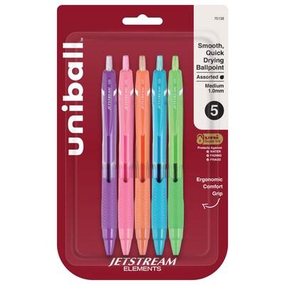 uni-ball Jetsream Elements Ballpoint Pens, Medium Point, 1.0mm, Assorted Ink, 5/Pack (70138)
