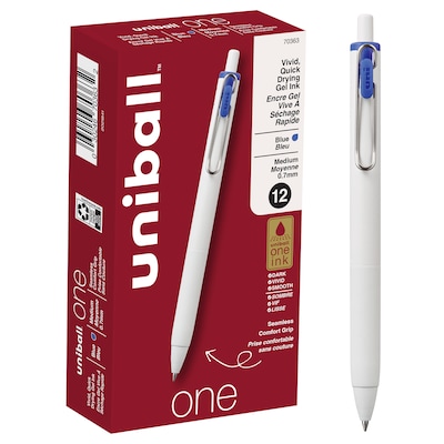 uni-ball one Retractable Gel Pens, Medium Point, 0.7mm, Blue Ink, Dozen (70363)