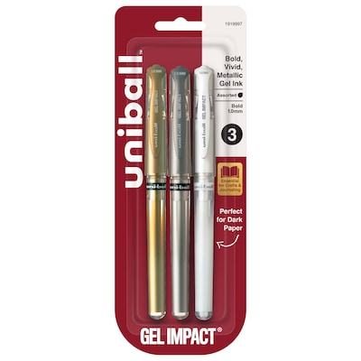 Make your writing or drawings stand out with vivid, silky smooth Signo Gel Impact pens from uniball featuring a 1.0mm bold point. With a variety of colors, these are the best gel pens to add a pop of metallic flair to your artistic and personal projects. The bold-point gel pens are acid free and fade resistant, so you can use them for scrapbooking, journaling, planner decorating or other projects that you want to last. Thanks to a comfortable rubber grip, you can maintain precise control as you create. Try metallic gel pens for an artful twist on envelopes and letters or to bring your bullet journal or planner to the next creative level. Gel Impact pens deliver the right balance of smoothness and precision for all your creative needs.
