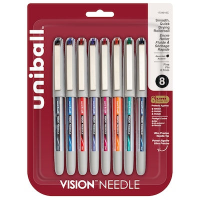 uni-ball Vision Needle Rollerball Pens, Fine Point, 0.7mm, Assorted Ink, 8/Pack (1734916)