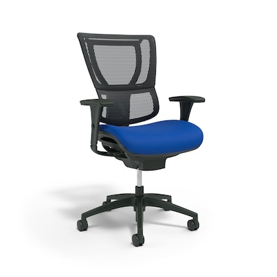 Recline effortlessly and work comfortably with this task chair. A one-touch lever lets you customize the seat height, slider, and tilt lock for proper posture, while the black mesh back prevents body heat buildup, letting you stay alert on hot afternoons. The adjustable lumbar offers lower back support for strain-free workdays, and the ANSI/BIFMA-compliant construction withstands regular use. Featuring a sturdy five-point star base, this chair is stable and dependable, and the synchro tilt system automatically sets the reclining resistance depending on your body weight. This FlexFit 1500TF mesh and fabric task chair has a waterfall padded seat to cushion your body during long workdays, and the adjustable armrests support your shoulders to lessen fatigue during long conferences.