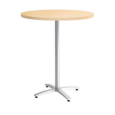 Union & Scale™ Multipurpose 36" Round Natural Maple Laminate Bistro Height Silver Base Table (54799)