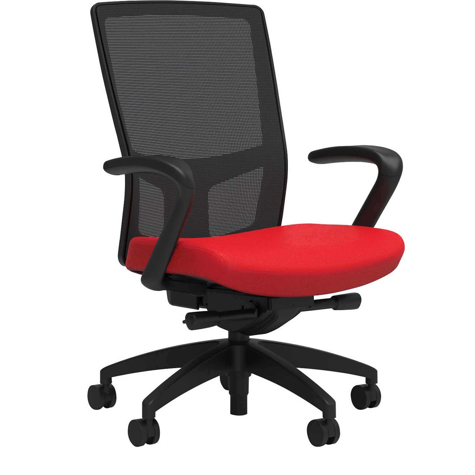 Quill offers office chairs with adjustable features like seat height, armrests, lumbar support, and tilt for personalized comfort. Some models, including kneeling chairs, promote better posture by reducing spinal pressure. Find the right fit for your workspace with ergonomic office chairs designed for all-day support.