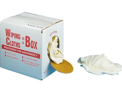 Remove dust and debris from your counters and other surfaces with this 4.5-pound box of cotton wiping cloths. The convenient box makes them easy to dispense, and the cotton material provides increased absorbency. These UNITED FACILITY SUPPLY wiping cloths are sold in bulk for company use.