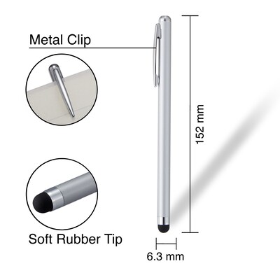 The Staples Universal Slim Stylus with its soft tip is compatible with all capacitive touch screens. Its slim size is perfect for smartphones or small tablets