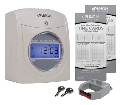 uPunch Electronic Calculating Time Clock Starter Bundle Punch Card System, White (HN2500)