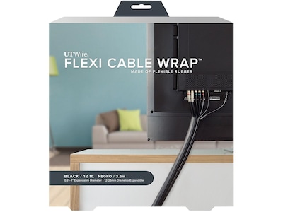 Organize cable clutter in the office or at home with this black 12-foot UT Wire Flexi Cable Wrap.