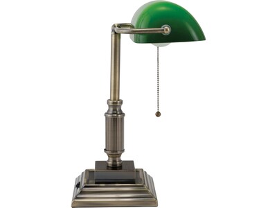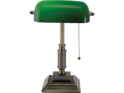 Improve your workstation with the classic-style wired V-Light LED banker's desk lamp. The vintage design, green shade, and antique bronze finish provide a traditional professional appearance and enhance the look of your desk. The energy-saving LED bulb improves visibility with bright, warm light. Features an old-fashioned pull chain and a multistep pedestal base.