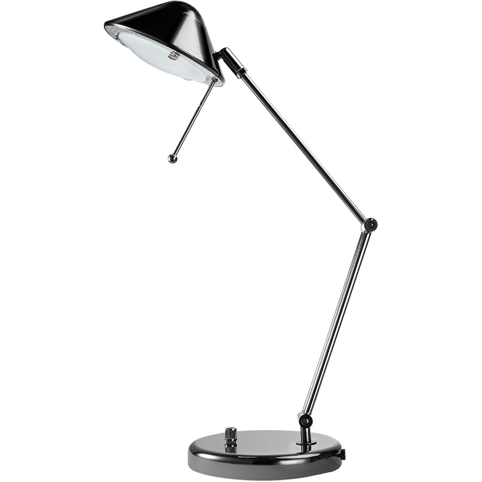 The V-Light LED Desk Lamp with Adjustable Arm provides focused lighting exactly where it's needed, making it perfect for any task. With its 2W LED bulb, this lamp delivers consistent and bright illumination to ensure clear visibility. The height-adjustable arm allows you to tailor the light to your preferred position, offering maximum comfort. Its three-point pivot lets you adjust the angle of the light effortlessly for precise focus at multiple angles. Built with a durable all-metal black chrome construction, this lamp combines style and resilience, ensuring long-lasting use.