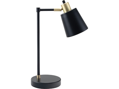 Improve your workstation with this classic-style V-Light LED desk lamp that is perfect for any home, office, or room. Features an adjustable shade to direct the light where it's necessary. The rotary switch is conveniently located in the shade. Comes in matte black metal with gold-tone neck accent.