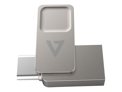 Quickly backup important files and photos with the V7 Dual-purpose Flash Drive from V7. USB-C on one side, traditional USB-A on the other side – tucked into a sleek, metal housing makes this flash drive the perfect companion for on the go storage and backup.