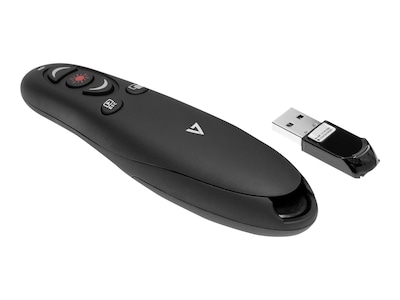 Enhance your presentation with this black V7 professional wireless presenter and laser pointer.