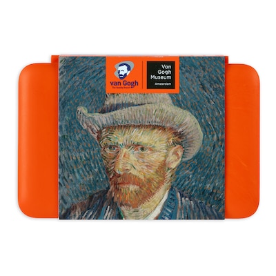 - This special edition of the Van Gogh pocket box is bright orange, like the small stripes of orange paint that can also be seen in the halo around the head in the self-portrait.
