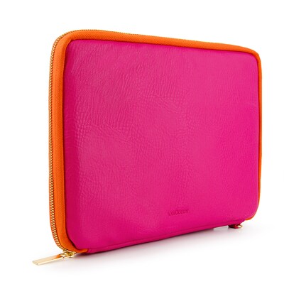 Form-fitting Leather Tablet Sleeve ensures a precise fit for your tablet up to 10.5 Inches. Constructed with high quality material and durable stitching. Large front pocket blends in with design and looks great. Fits up to 10.5 Inch tablet.