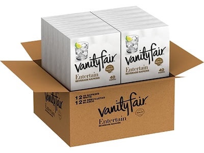 Vanity Fair Entertain Beverage Beverage Napkin, 2-ply, White, 40 Napkins/Pack, 12/Carton (35134)