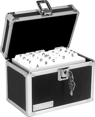 Vaultz Locking Card File Box, Holds 4" x 6" Cards, 450-Card Capacity, Black/Silver