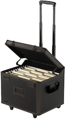 Highly mobile, with wheels and telescoping handle, this high-capacity locking chest is a safe and attractive place to store and transport letter or legal-size hanging files.