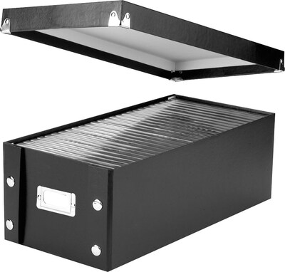 Vaultz Snap-N-Store™ DVD Storage box in black color can hold up to 26 DVDs or video games in their original cases. DVD Storage box measuring 5 1/2" x 7 5/8" x 15 3/4" provides a cost effective solution to protect CDs/DVDs.
