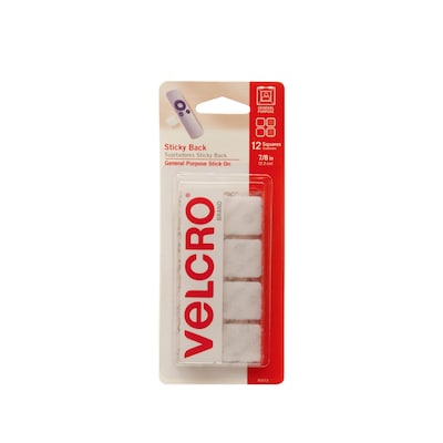 Secure white boards, calendars and other items to desks, walls and various other surfaces with these white squares. These VELCRO Brand sticky back squares come in a pack of 12, work best on smooth surfaces and feature a strong adhesive, making them great for use both indoors and outdoors.